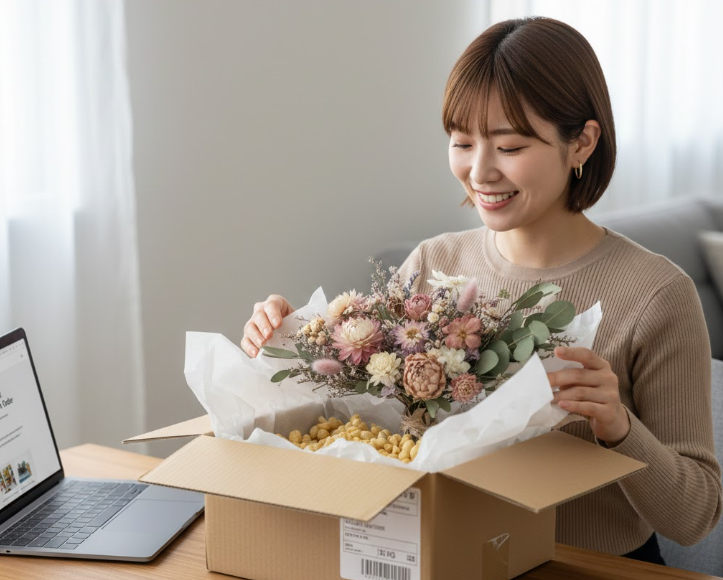- 注意点:「ドライフラワーは繊細なため、配送中に多少の花落ちがある場合があります」といった、商品の特性に関する注意書きがきちんとされているお店は、誠実であると言えます。