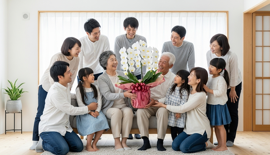 美しい胡蝶蘭を囲んで家族写真を撮るのも、きっと素敵な思い出になります。