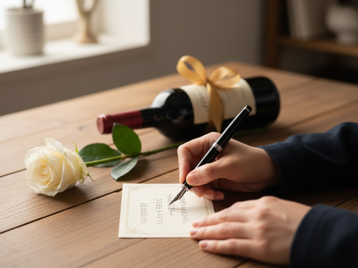贈る際には、「新しいお住まいでの益々のご繁栄を願って、縁起の良いお酒を選びました」といった一言をメッセージカードに添えると、あなたの細やかな心遣いが相手に伝わり、より一層喜んでもらえるでしょう。