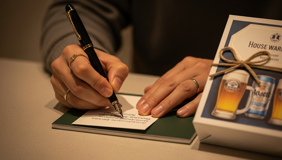 贈り物を渡す際に、短いものでも手書きのメッセージを添えることは、新築祝いのビールのマナーの中でも特に重要な心遣いと言えるでしょう。