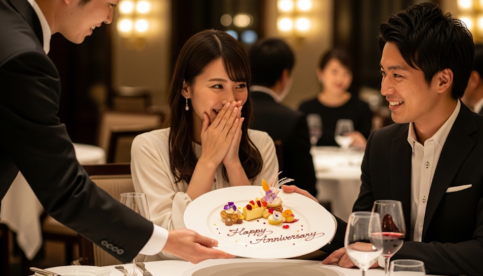 自分たちで一つひとつ手配するのは大変ですが、記念日プランを利用すれば、レストラン側がトータルで演出をサポートしてくれるため、当日は食事と会話に集中できます。
