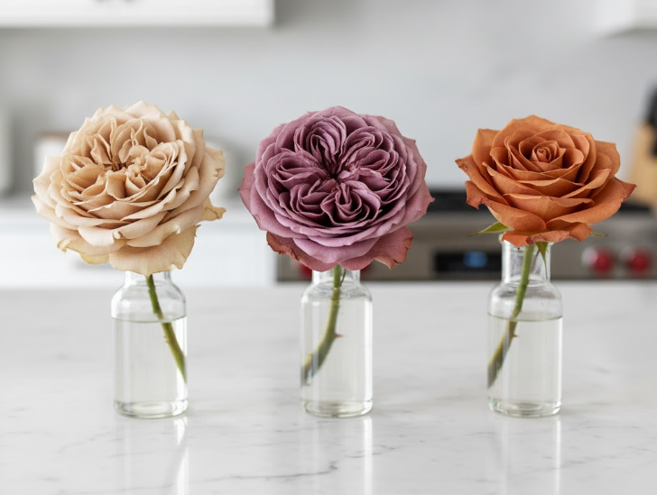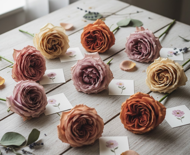 ヴィンテージカラーのバラは、乾燥させてもその美しい色合いが残りやすいため、ドライフラワーに非常に適しています。